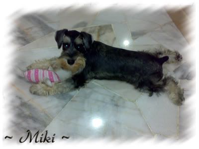 Miki, the Miniature Schnauzer, is my new puppy. She was born on 2 June 2007. She love people and very active. Miki is a clever girl and everybody in the house loves her!