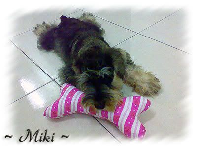 I sew her a big bone soft toys!! I love to look at her playing with this bone ^_^